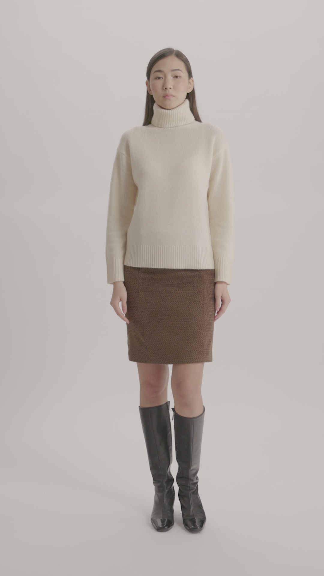 Chaleur et raffinement au naturel. Le pull Aiden écru en maille séduit par son col roulé enveloppant et sa texture luxueuse, mêlant laine et cachemire. Tricoté dans une maille épaisse, il offre un confort douillet et une allure sobrement élégante. Finitions bord-côte soignées, silhouette intemporelle : un indispensable de l’hiver.
