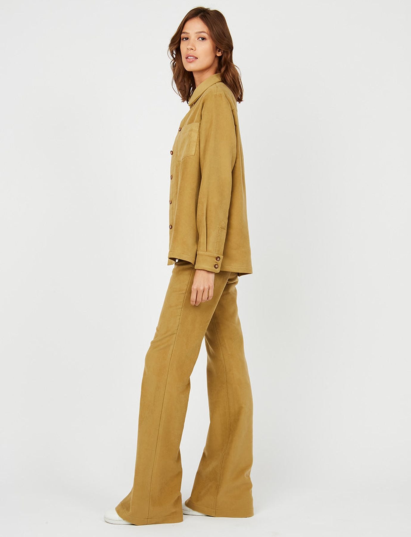 Le pantalon Charlotte kaki effet peau de pêche fait partie des pièces iconiques de la silhouette Ines de la Fressange Paris, chaque détail est travaillé et sa coupe "flare" inspirée des années 60's vous offrira un look que vous adorerez.